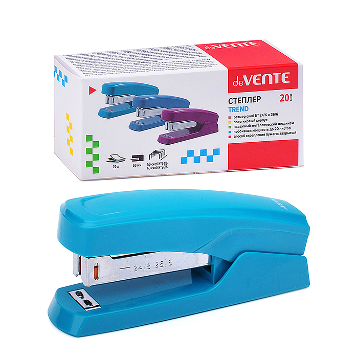 Степлер "Trend" 24/6&26/6 (мощность 20 листов, глубина скрепления 50 мм) пластиковый, в картонной коробке, изумрудно-бирюзовый