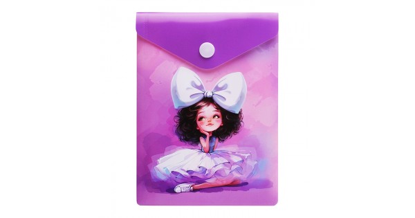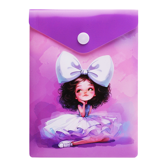 Папка для документов пластиковая"Балерина с бантом"полипропилен, формат А6, 15.8х11.4 см, кнопка