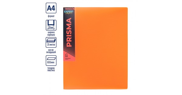 Папка с вкладышами A4 600 мкм. 20 мм эффект 3D. оранжевый 20 л. Prisma neon