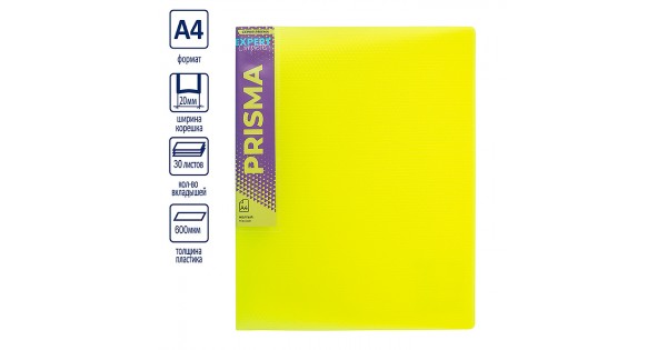Папка с вкладышами A4 600 мкм. 20 мм эффект 3D. желтый 30 л. Prisma neon