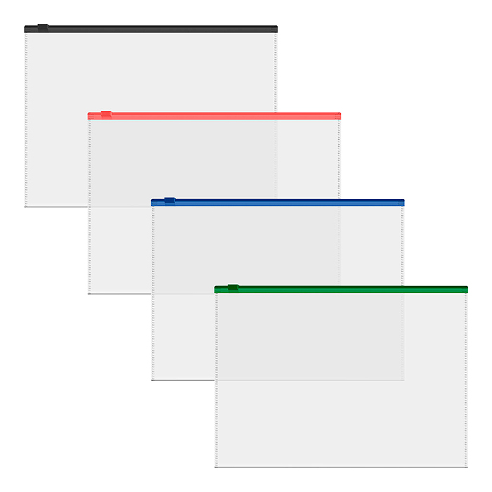 Zip-пакет пластиковый Fizzy Clear, c цветной молнией, A5+, прозрачный, ассорти (в пакете по 12 шт.)