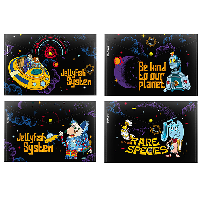 Папка-конверт на кнопке пластиковая "Тайна третьей планеты" A4, ассорти (в пакете по 12 шт.)