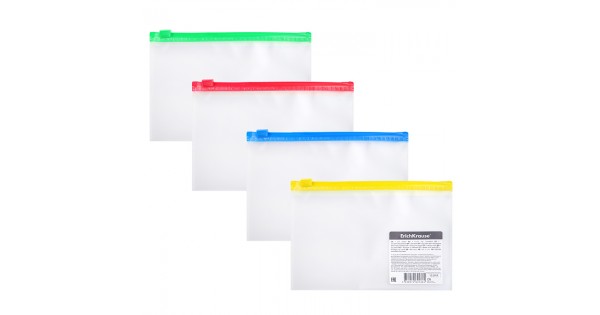 ZIP-пакет пластиковый ErichKrause® Fizzy Clear с цветной молнией, Travel, ассорти (в пакете по 12 шт.)