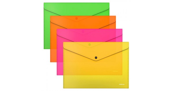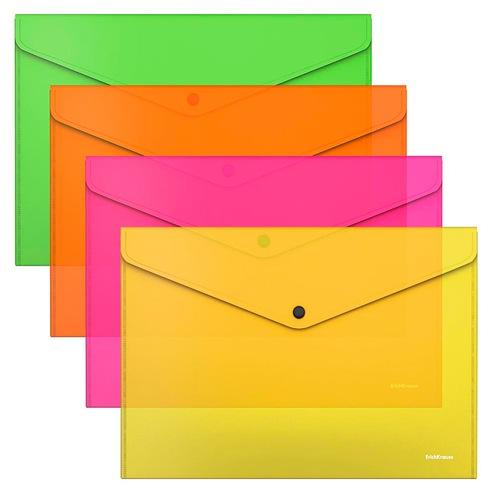 ТОП Папка-конверт на кнопке пластиковая Fizzy Neon, A4, полупрозрачный, ассорти