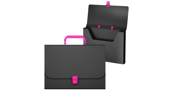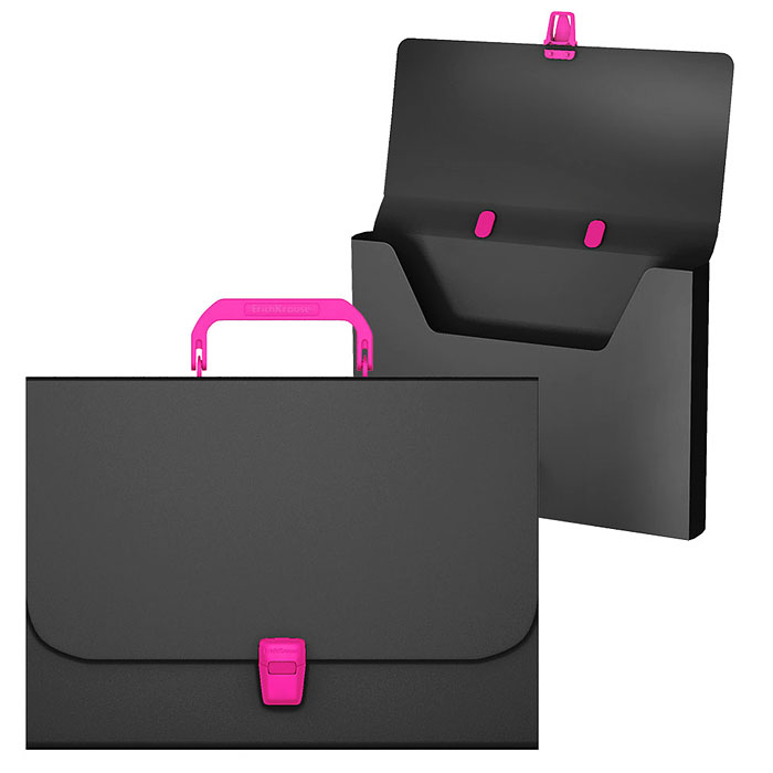 Портфель пластиковый Matt Accent , A4, черный с розовой ручкой и замком