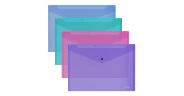 Папка-конверт на кнопке пластиковая Glossy Vivid, полупрозрачная, A4, ассорти