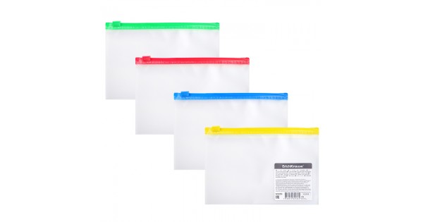 ZIP-пакет пластиковый Fizzy Clear c цветной молнией, C6, ассорти (12 шт.)