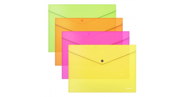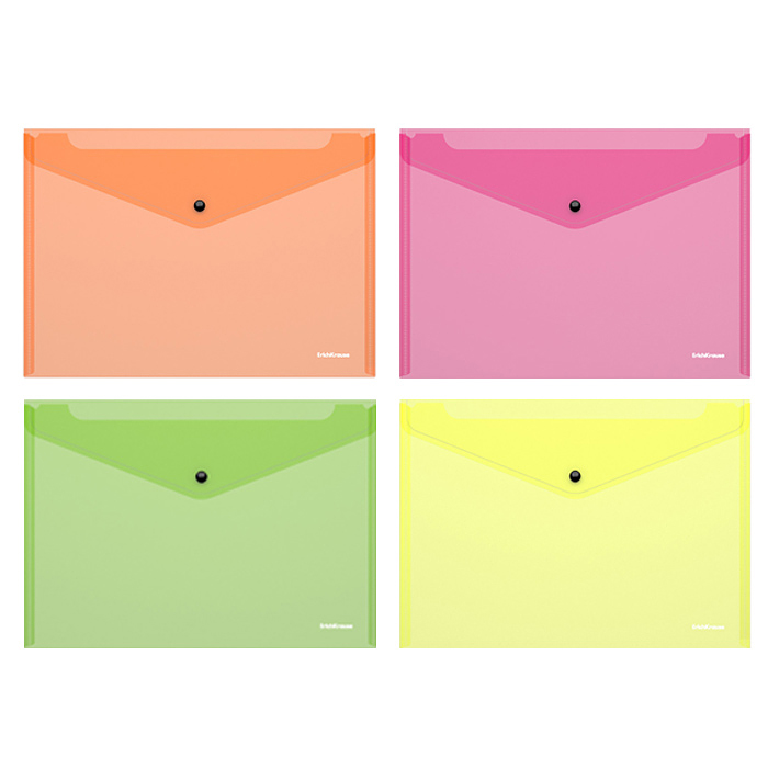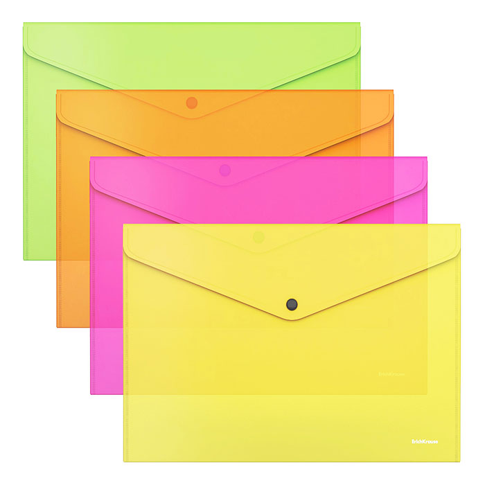 Папка-конверт на кнопке пластиковая Glossy Neon, полупрозрачная, A4, ассорти