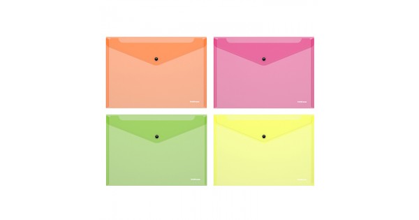 Папка-конверт на кнопке пластиковая Fizzy Neon, полупрозрачная, A4, ассорти