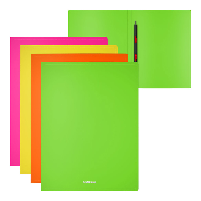 Папка-скоросшиватель пластиковая с пружинным механизмом Matt Neon, A4, ассорти