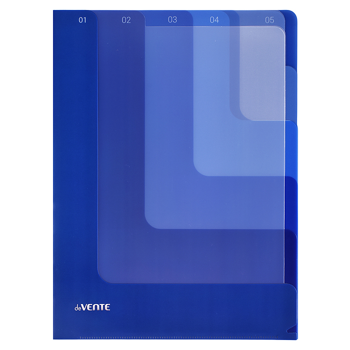 Папка-уголок c 5-ю отделениями "Degrade" A4 (230x310 мм) полипропилен 180 мкм, глянцевая, синяя, эффект деграде