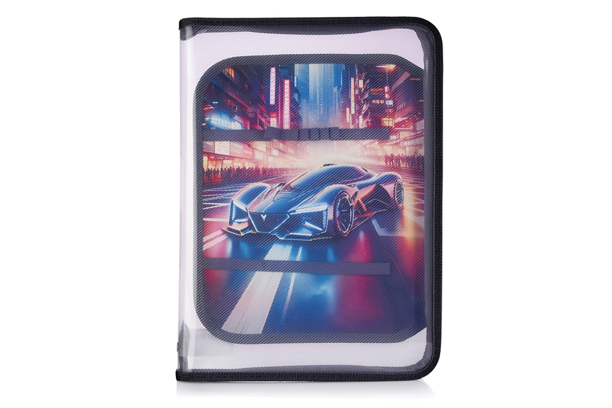 Папка для труда А4 молния вокруг, пластик 325/230/25 "Night car"