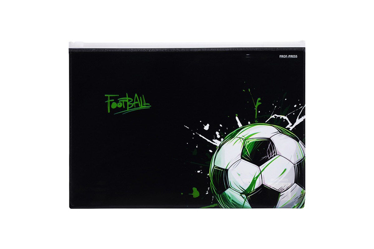 Папка-конверт на молнии А4, 180мкм "Мяч на черном"