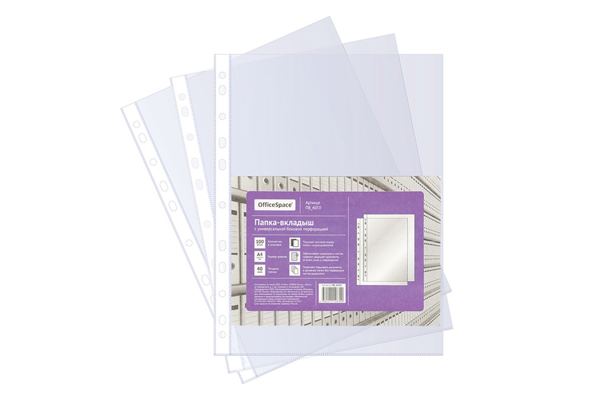 Папка-вкладыш с перфорацией (файл) А4, 40мкм, глянцевая
