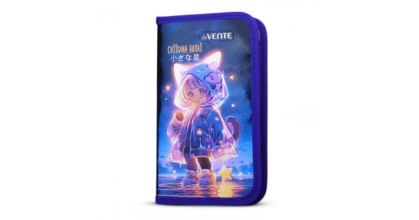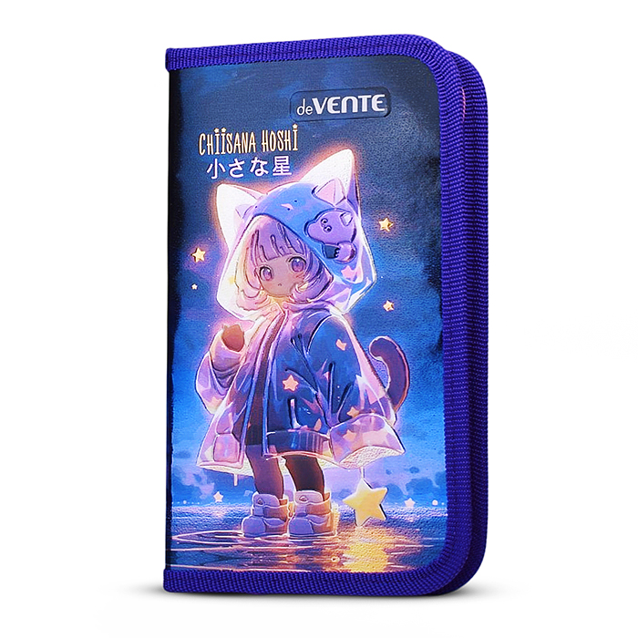 Пенал "Chiisana Hoshi" 205x120 мм, одностворчатый прямоугольный, на молнии, картон с покрытием из фольги с конгревным тиснением