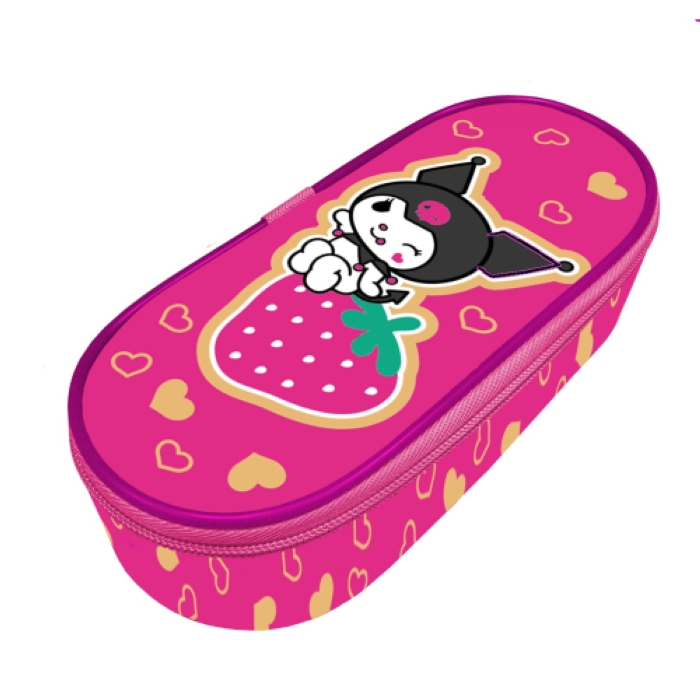 Пенал корпусный овальный "Kuromi" размер 225*90*50мм. Жесткий каркас овальной формы на картоне