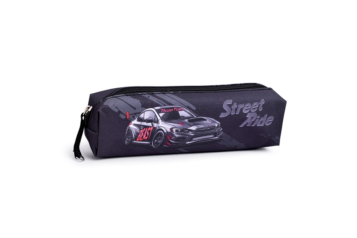 Пенал школьный "Черная машина" без наполнения, 20х4х4.5 см, микрофибра