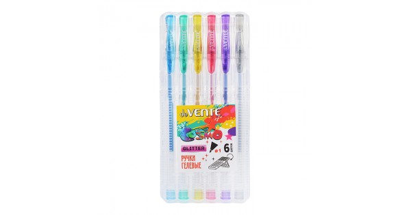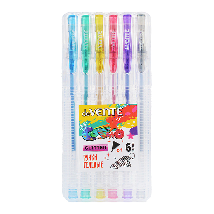 Набор ручек гелевых 6 цв. с блестками "Cosmo Glitter" d=1 мм, прозрачный корпус
