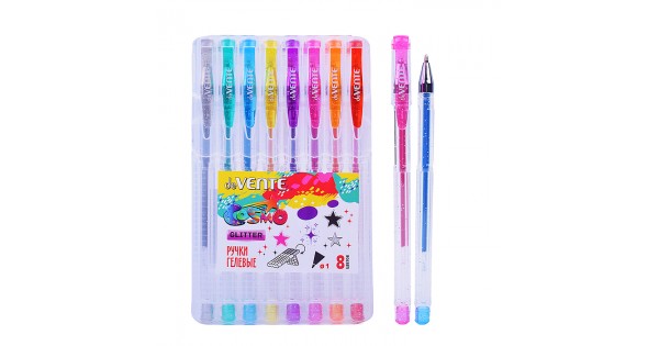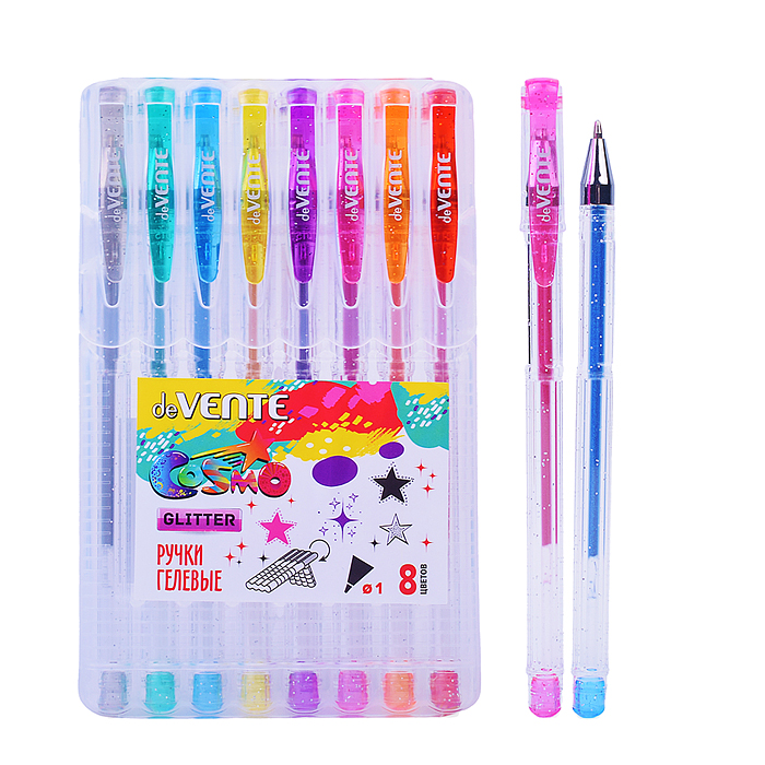 Набор ручек гелевых "Cosmo Glitter" 8 цветов с блестками, d=1 мм, прозрачный корпус.