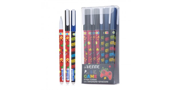 Ручка гелевая стираемая "Game" d=0,5 мм, 2 дизайна корпуса ассорти, с ластиком, синяя