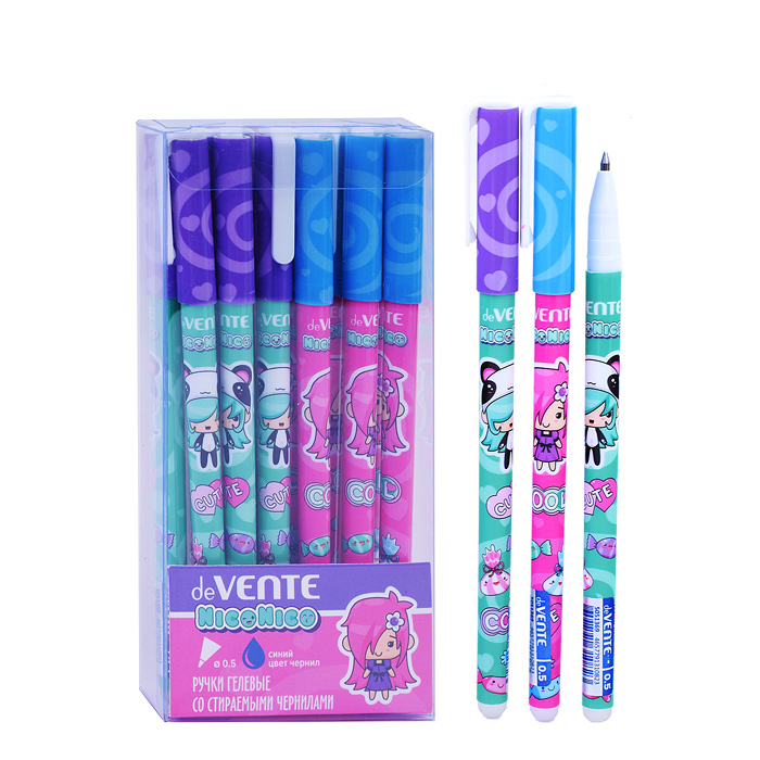 Ручка стираемая гелевая с принтом "Funster" "Anime", синяя, корпус ассорти, игольчатый наконечник 0,5 мм, линия 0,35 мм