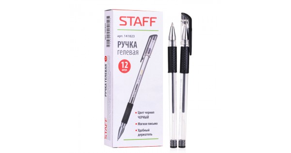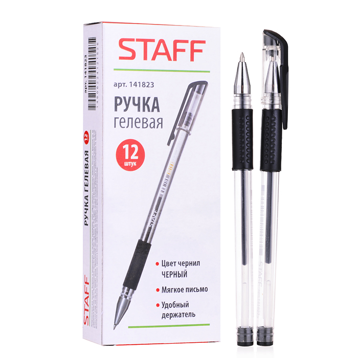Ручка гелевая черная эконом, корпус прозрачный, резиновый держатель,