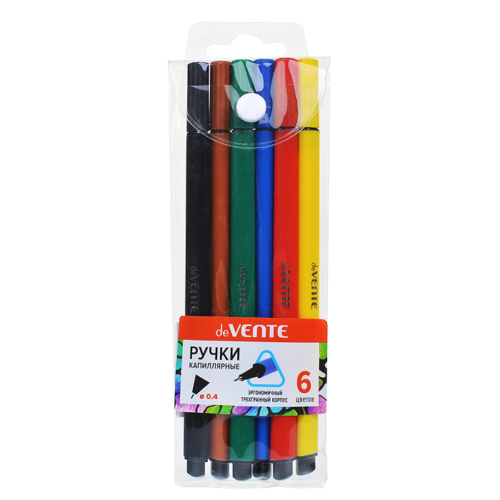Набор ручек капиллярных "Trio BQ" 06 цветов, d=0,4 мм, с цветным трехгранным корпусом, колпачок БЕЗ КЛИПА, в пластиковой упаковке