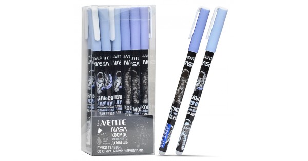 Ручка гелевая стираемая "NASA" d=0,5 мм, 2 дизайна корпуса ассорти, с ластиком, синяя