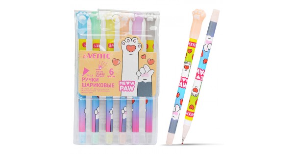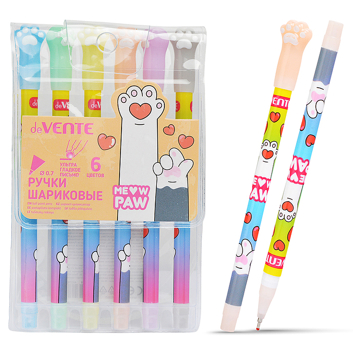 Набор ручек шариковых "Meow Paw" 6 цветов, d=0,7 мм, пластиковый корпус