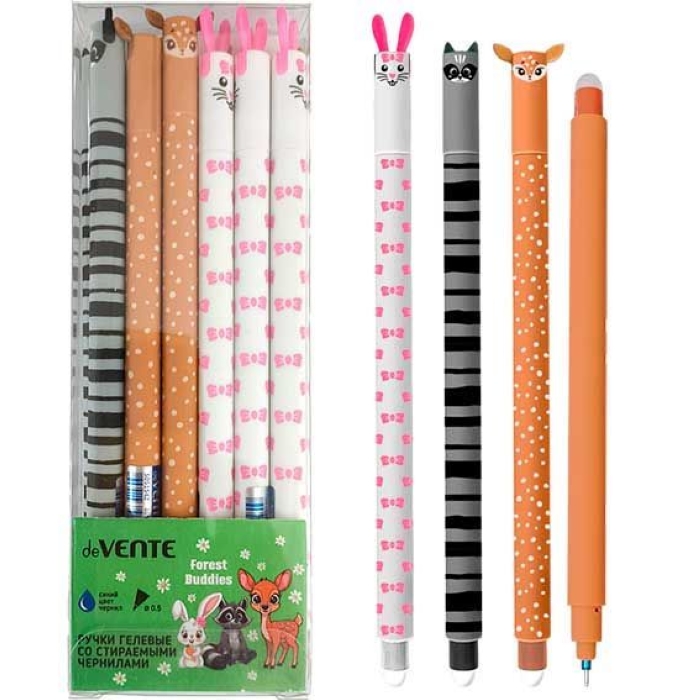 Ручка гелевая стираемая "Forest Buddies" d=0,5 мм, корпус с эффектом Velvet-Touch, синяя