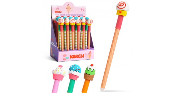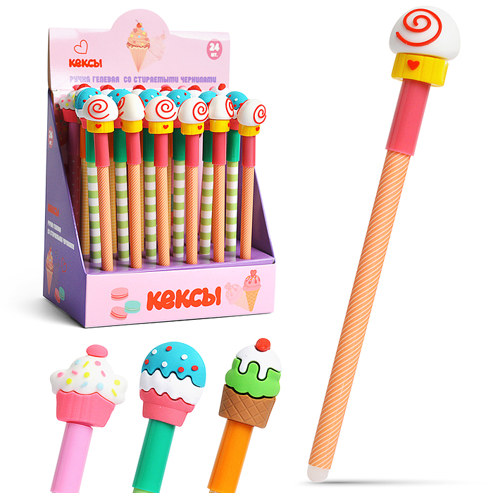 Ручка гелевая "Кексы" со стираемыми чернилами, цвет чернил синий 0,5 мм в пластиковом тубусе