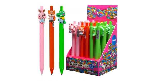 Ручка шариковая автоматическая "Cute animals" синие чернила 0.7мм в дисплее