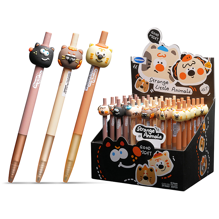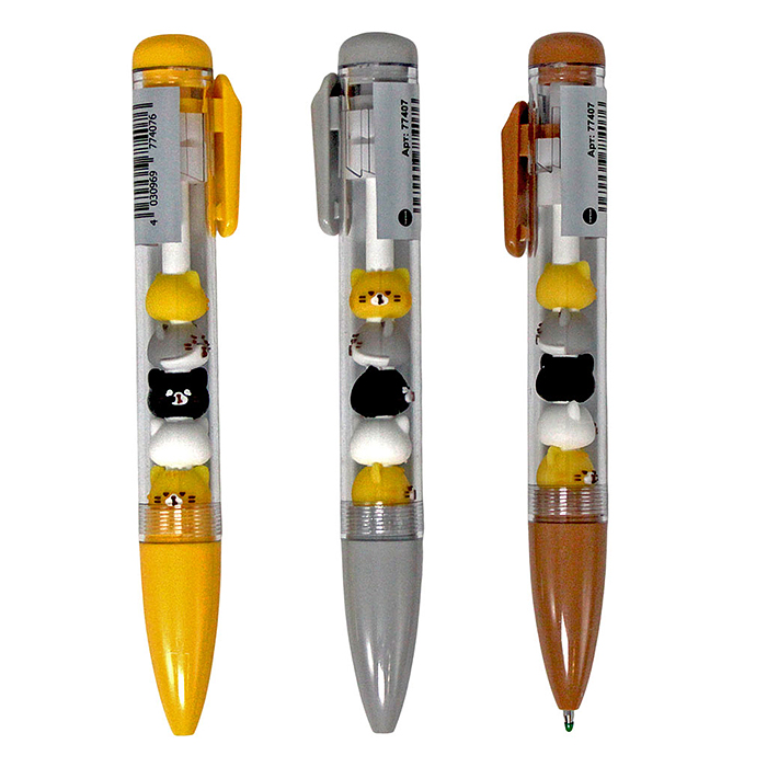 Ручка гелевая автоматическая "Странные котики" синяя, 0,5 мм, в дисплее