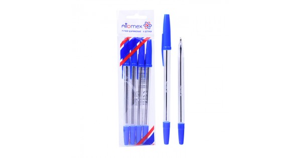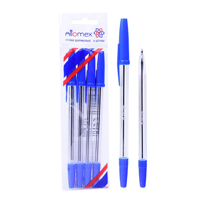 Набор ручек шариковых "Attomex" 4 шт (4 син) d=0,7 мм, прозрачный корпус, сменный стержень, в пластиковом блистере