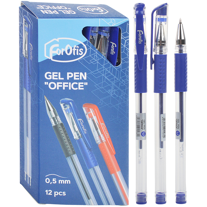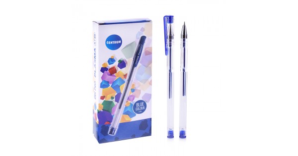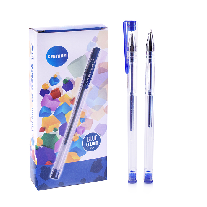 Ручка гелевая синяя "PLASMA" с металлическим наконечником 0,7 мм. в прозрачном корпусе, клип в цвет чернил