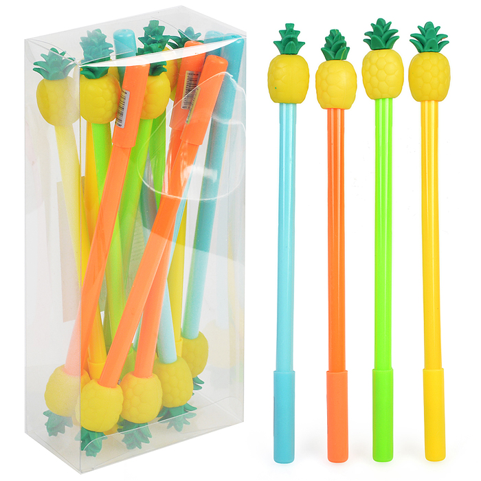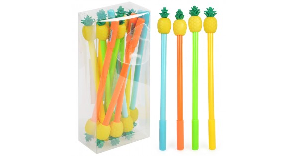 Ручка гелевая "Ананас" 0,5 мм, 4 цвета ассорти, цвет чернил синий, в пластиковой упаковке, в пластиковой упаковке