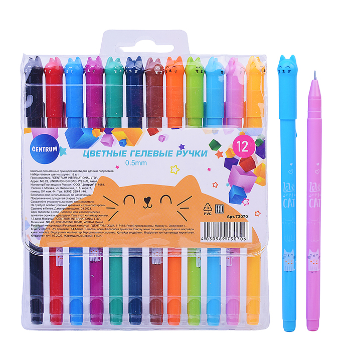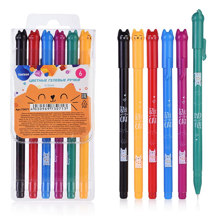 Ручка гелевая "Кактусы" 0,5 мм, цвет чернил синий, цвета в ассортименте, в пластиковой упаковке