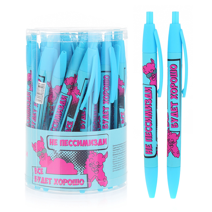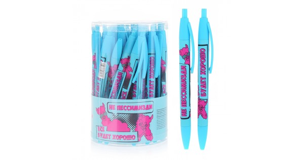 Ручка шариковая автомат "Не пессимизди" прорезиненная, цвет чернил синий, 0.7мм, в друме