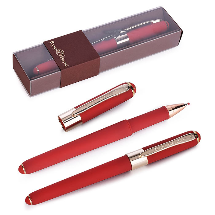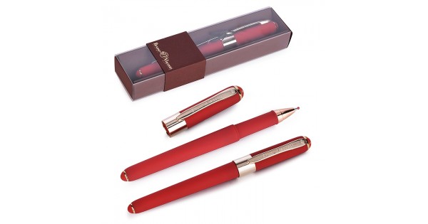 Ручка в футляре "MONACO" шариковая 0.5мм, синяя (красный корпус, коричневая коробка)