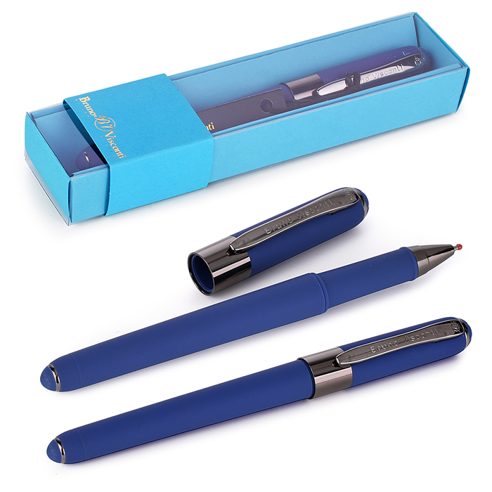 Ручка в футляре "MONACO" шариковая 0.5мм, синяя (синий корпус, голубая коробка)
