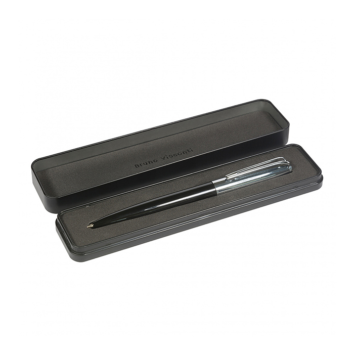 Ручка "Napoli" в металлическом Premium футляре, 1,0 мм, синяя (корпус черн и серебр, футляр черный)