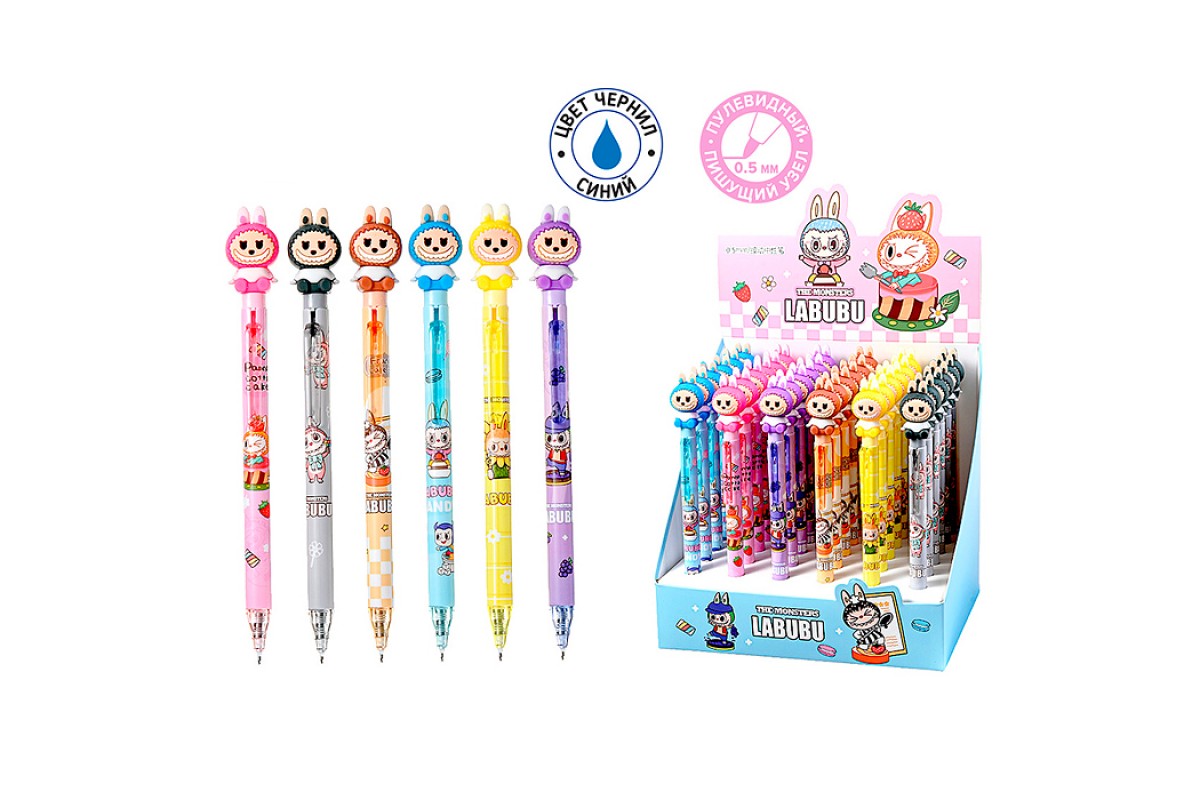 Ручка гелевая автоматическая "Зубастик" синяя, пулевидный пишущий узел 0.5 мм,