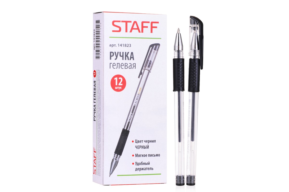 Ручка гелевая черная эконом, корпус прозрачный, резиновый держатель,
