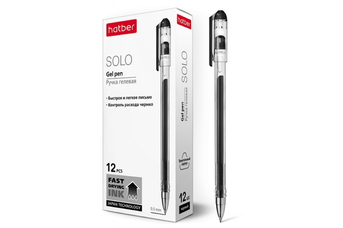 Ручка гелевая "Соло" черная 0,5мм чернила быстросохнущие трехгран. корпус