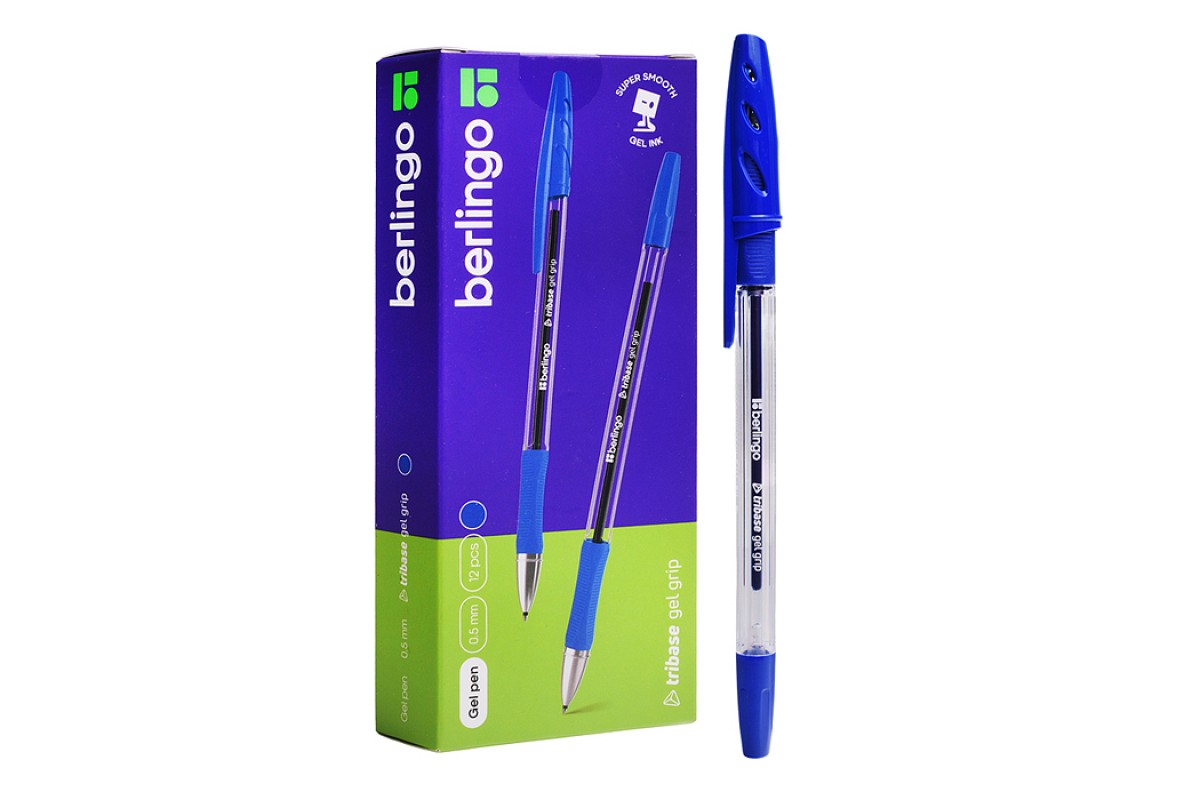 Ручка гелевая "Tribase Gel grip" синяя, 0,5мм, грип