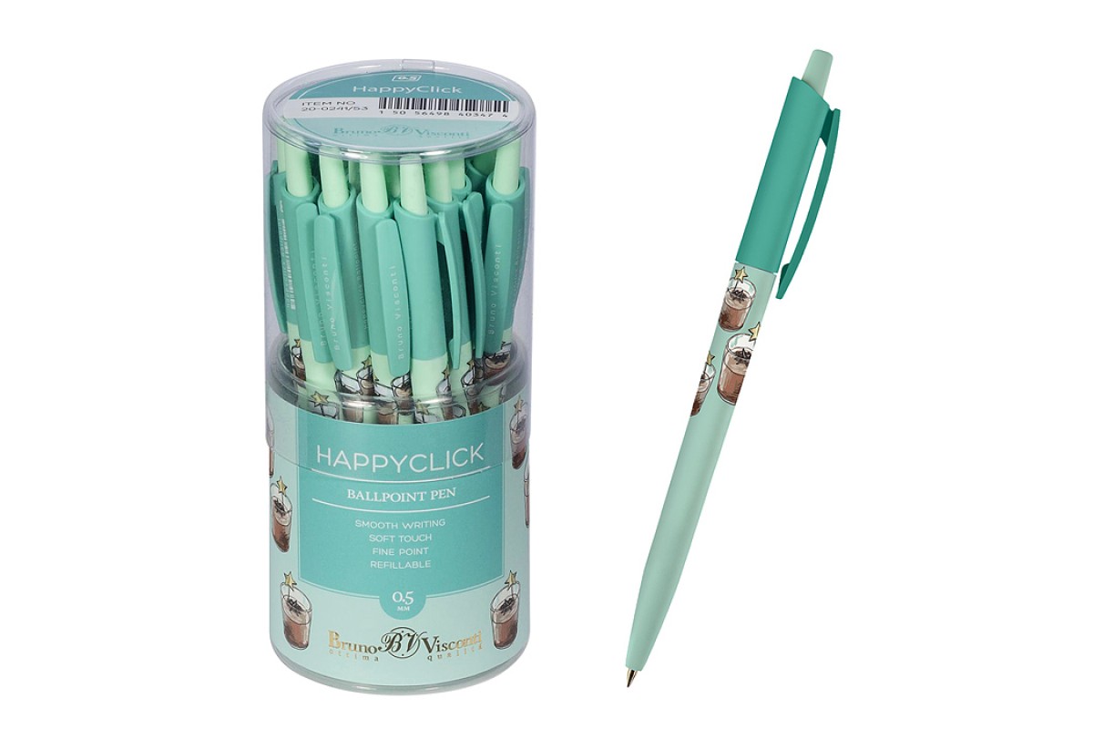 Ручка "HappyClick. Кофемания. Шоколадный коктейль" шариковая 0.5 мм, синяя