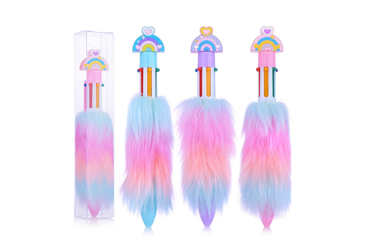 Ручка шариковая автоматическая Plush Rainbow, 6 цв.