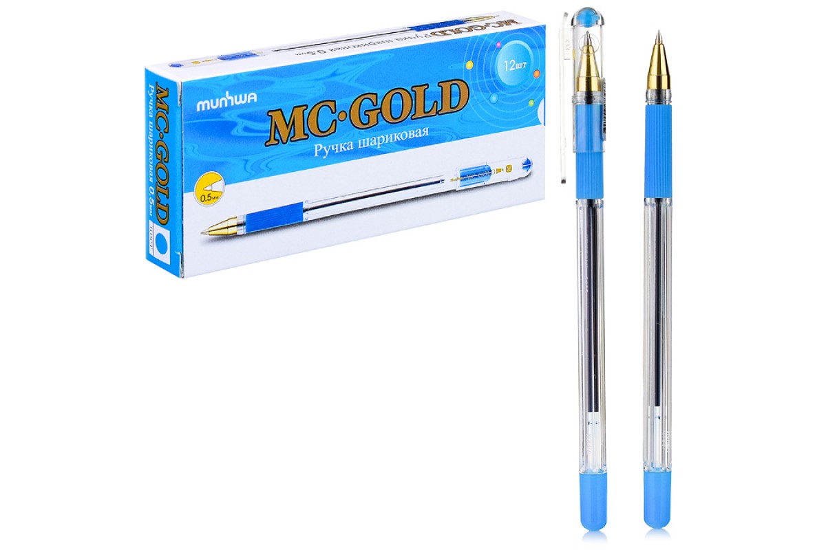 Ручка шариковая "MC Gold" голубая, 0,5мм, грип