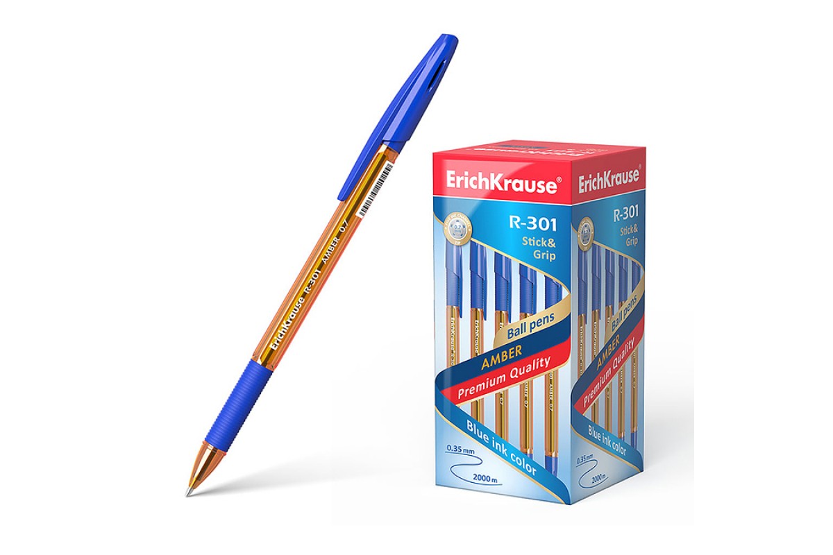 Ручка шариковая R-301 Stick&Grip Amber 0.7, цвет чернил синий