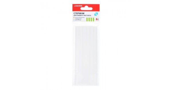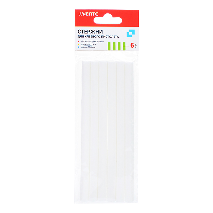 Клеевые стержни Ø 11 мм, непрозрачные белые, длина 180 мм, 6 шт в упаковке c картонным европодвесом